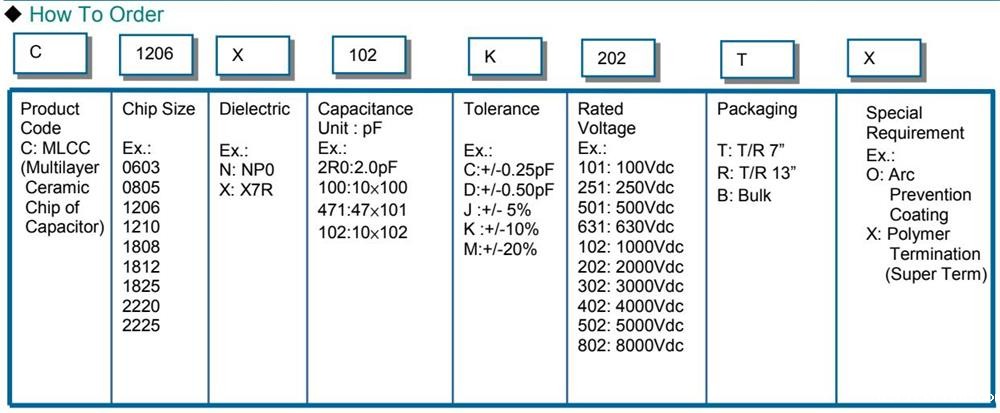 例如:禾伸堂电容型号:C1206X102K202TX